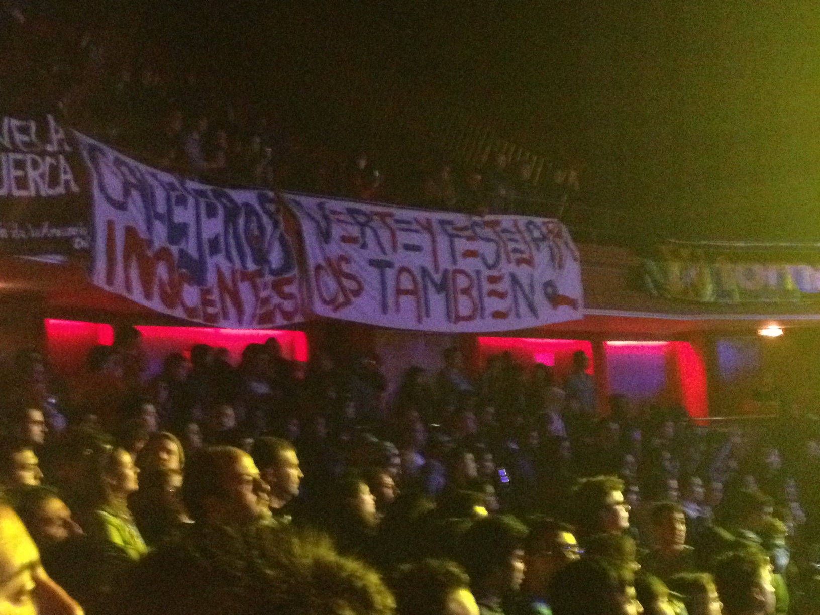 La Vela Puerca acercó el fútbol al Caupolicán, esa pasión que desborda lo peor y lo mejor de nosotros. Don Jorge Sampaoli llegaba a ver a una de sus bandas favoritas y los hinchas no dudaron en pedirle una foto. Tras una fuerte discusión, un guardia sacó a golpes a los primeros hinchas que pidieron foto con el entrenador. Violencia innecesaria. ¿Reclamos? A la FIFA, lamentablemente.
