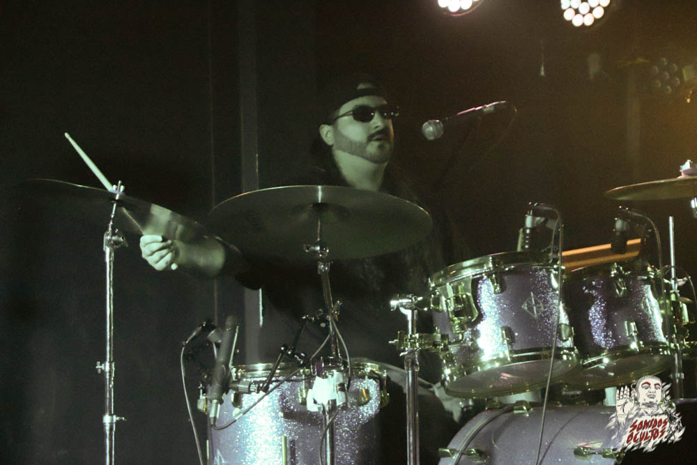 Hubo espacio para una interpretación instrumental, con «Réquiem del Aqueronte», un momento de alto fuelle en el que Gianni Ferrrera mostró su habilidad baterística, un maquinón a la hora de aporrear la batería, con impecable uso de la doble pedalera, fuerte golpe al ride y versatilidad en los cambios de marcha.
