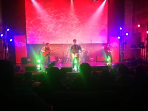 Comienza a llegar más gente a la sala, superando las 60 personas al ojímetro. Este es un recinto que entrega las mejores condiciones para sonar bien, pero pareciera que falta mayor intuición para entender cuando viene un solo de guitarra. Tal vez falta que cada banda se presente con su sonidista, pues en esta oportunidad los operadores de sala no le achuntaron mucho. Hacer sonido en vivo no se trata de ponerle delay a los coros solamente, más aún considerando el registro que la sala ofrece. Un servicio de streaming para los que quieran repetirse el plato, o para los flojos que no fueron o para aquellos que no lograron llegar a la hora, pues sí aquí se avisa con tiempo que la boletería se cierra una hora después de iniciado el primer show. Desconocemos el fin, pero tal vez la SCD no sabe cómo es el público que va a las tocatas independientes…tal vez la audiencia no respeta ni cree en que los horarios se cumplen. Reflexión entre apuntes con tabaco.