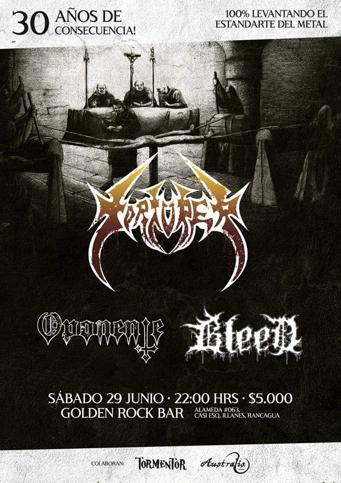 Existe la idea de que, en épocas turbulentas de represión, las artes se ven influidas por una motivación que logra concretar las mejores obras. En el caso del Chile en dictadura, la violencia y la injusticia fueron denunciadas con valentía en forma de creatividad, a veces con cantos desde el folklore o con poesía e ironía en la música popular. Sin embargo, muchos jóvenes encontraron su catarsis armando bandas para tocar lo más rápido, pesado, crudo y oscuro posible, escupiendo letras sobre escenas apocalípticas o futuros distópicos. Esa rabia después la llevaban a gimnasios o galpones donde, por algunas horas, la libertad de expresión era una celebración colectiva del caos en conciertos memorables. En ese caldo de cultivo, nació Torturer.