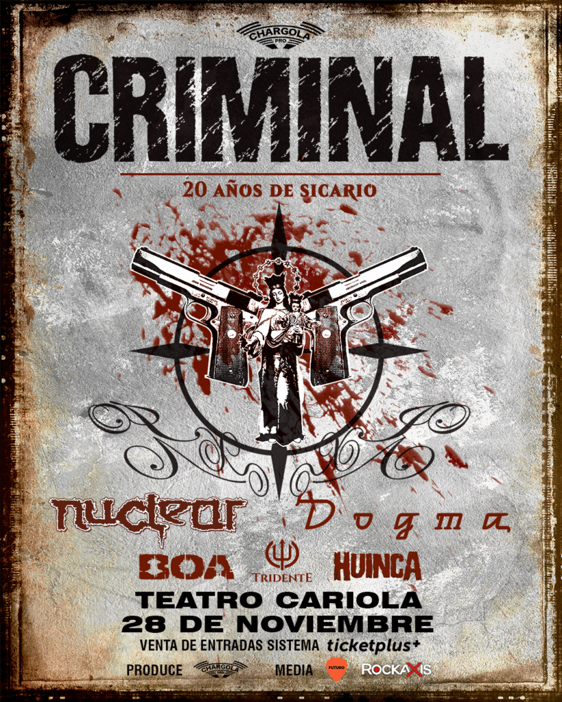 Con esta nueva alineación, CRIMINAL reafirma su compromiso con la brutalidad, la historia y la evolución constante. La gira de aniversario de “Sicario” recorrerá distintas ciudades del país, interpretando en vivo los himnos que marcaron a toda una generación, junto a otros clásicos de su discografía.