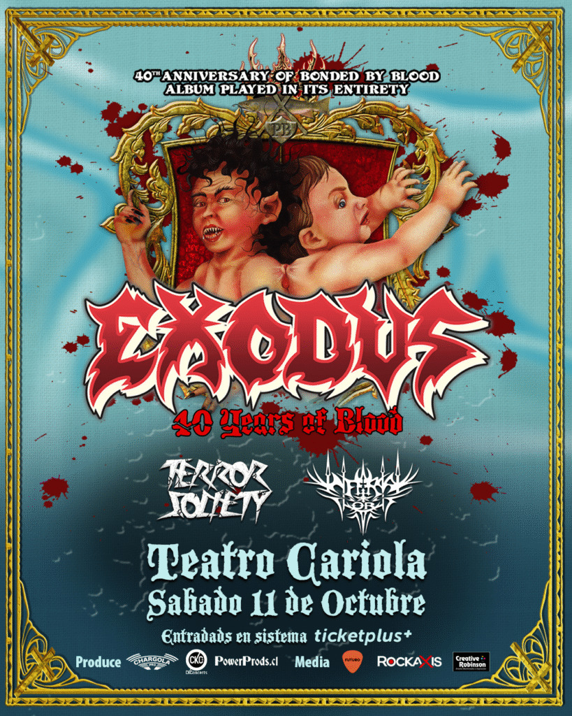 Exodus confirmó una nueva visita a nuestro país tras un poco más de un año desde que se presentaron en el festival The Metal Fest y, en esta ocasión, llegará con un especial show en solitario que celebrará los 40 años de su icónico disco debut “Bonded by Blood” el próximo 11 de octubre en el Teatro Cariola y, además, esta presentación marcará el gran regreso de Rob Dukes como vocalista de la agrupación.
